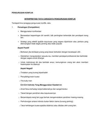 PENGURUSAN KONFLIK DALAM KUMPULAN Definisi Konflik. Adanya saja perkara di antara kamu yang seorang terhadap yang lain telah.